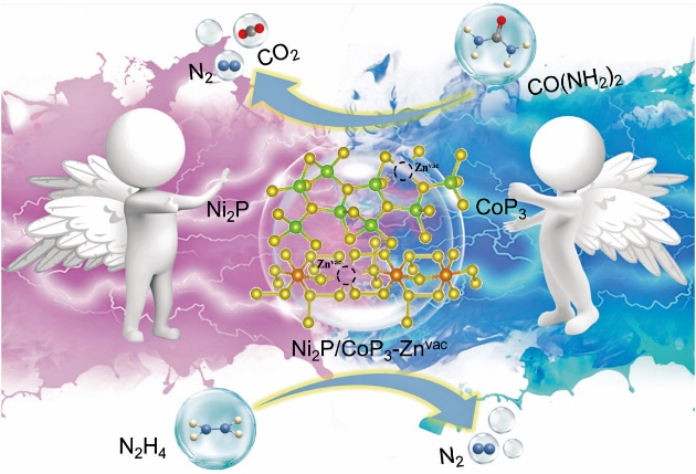 构筑富含阳离子缺陷的贫P-Ni2P和富P-CoP3异质结用于增强尿素/肼电催化氧化反应